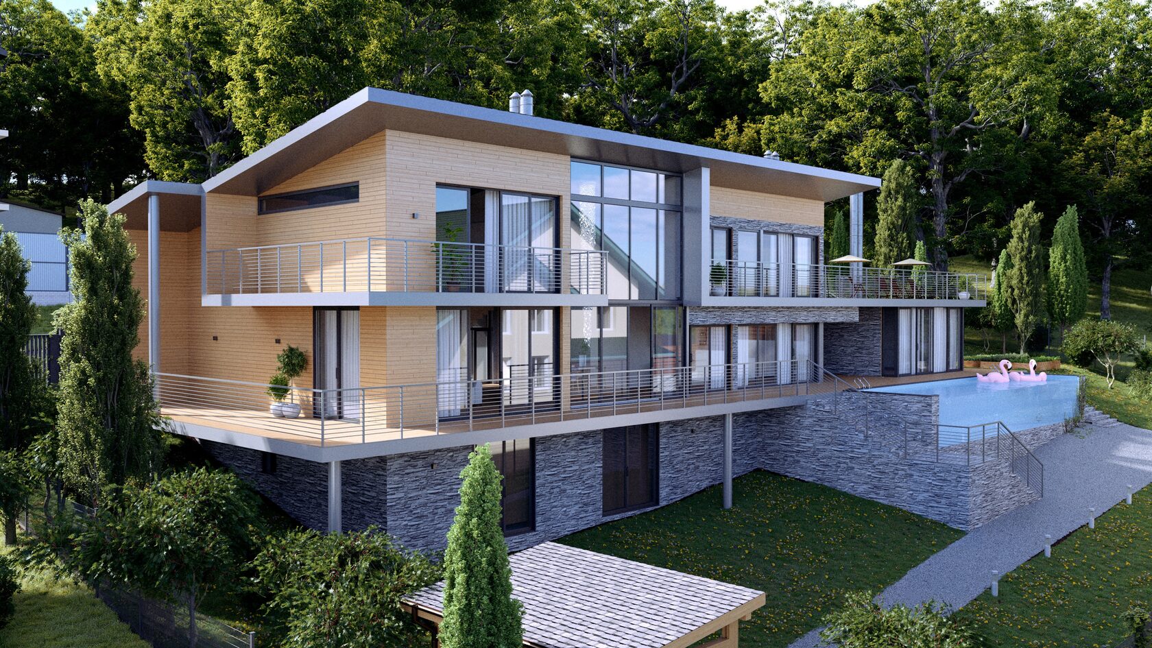 Далее совместно с заказчиком формируем техническое задание: определяем ваши пожелания к площади, стилю, планировке, функционалу. На этой базе разрабатываем эскизное проектирование — архитектурную концепцию, варианты планировок, фасады, визуализации, вносим корректировки по вашему мнению.